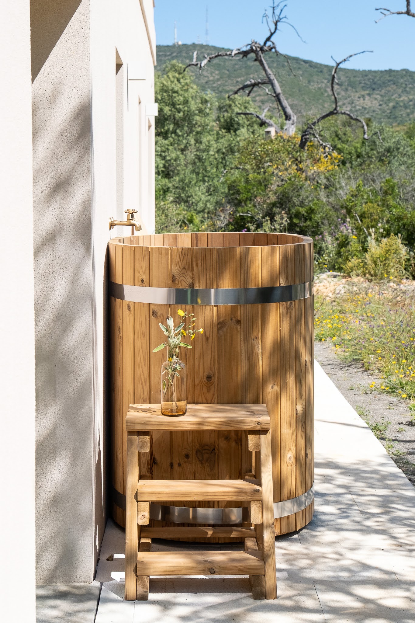 Our 7 acres of unspoiled land is typical of the barrocal region of the Algarve. Olive and carob trees predominate, but we also have almond, medronho and fig trees. We are leaving much of the land wild, to encourage biodiversity and space for wildlife. Several paths wind through the property, allowing guests to explore at their own pace.